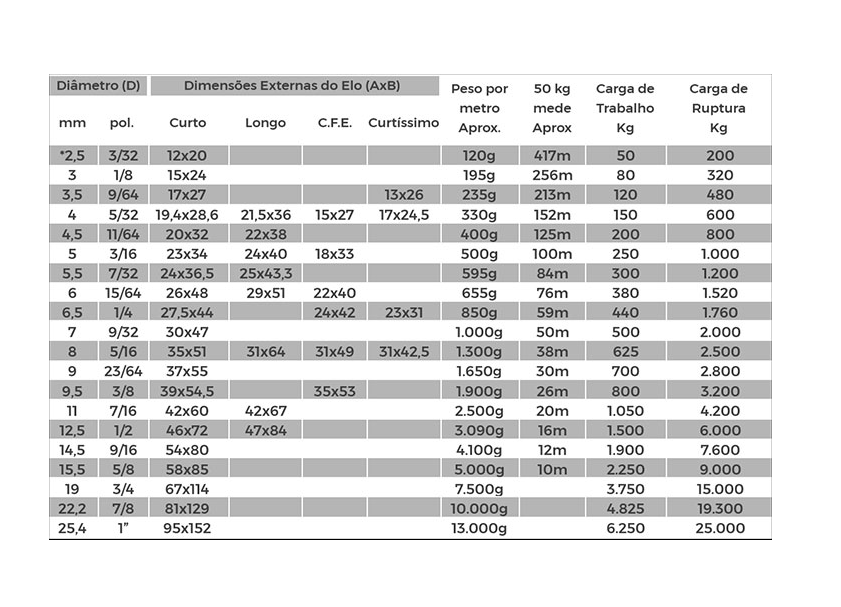 Corrente de Elos Curtos 6,5MM 1/4" ZB - 1kg