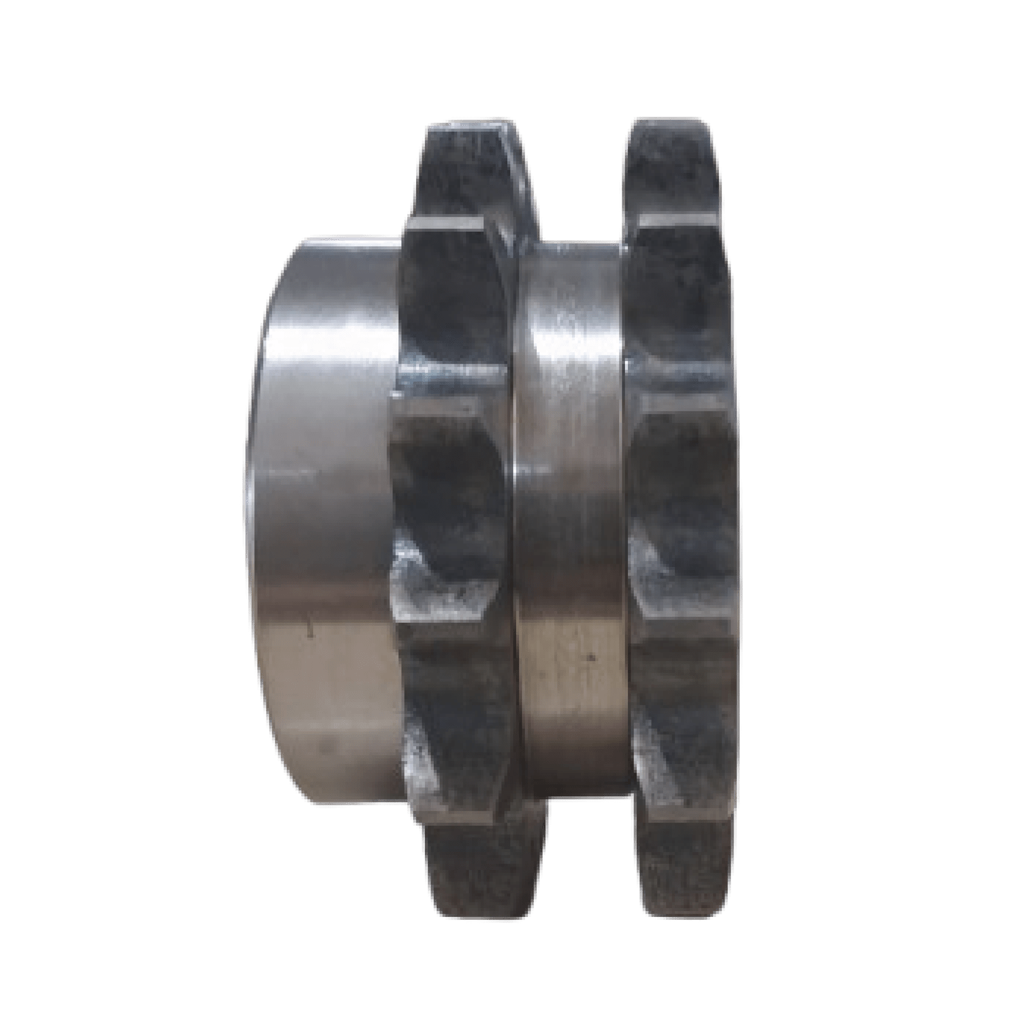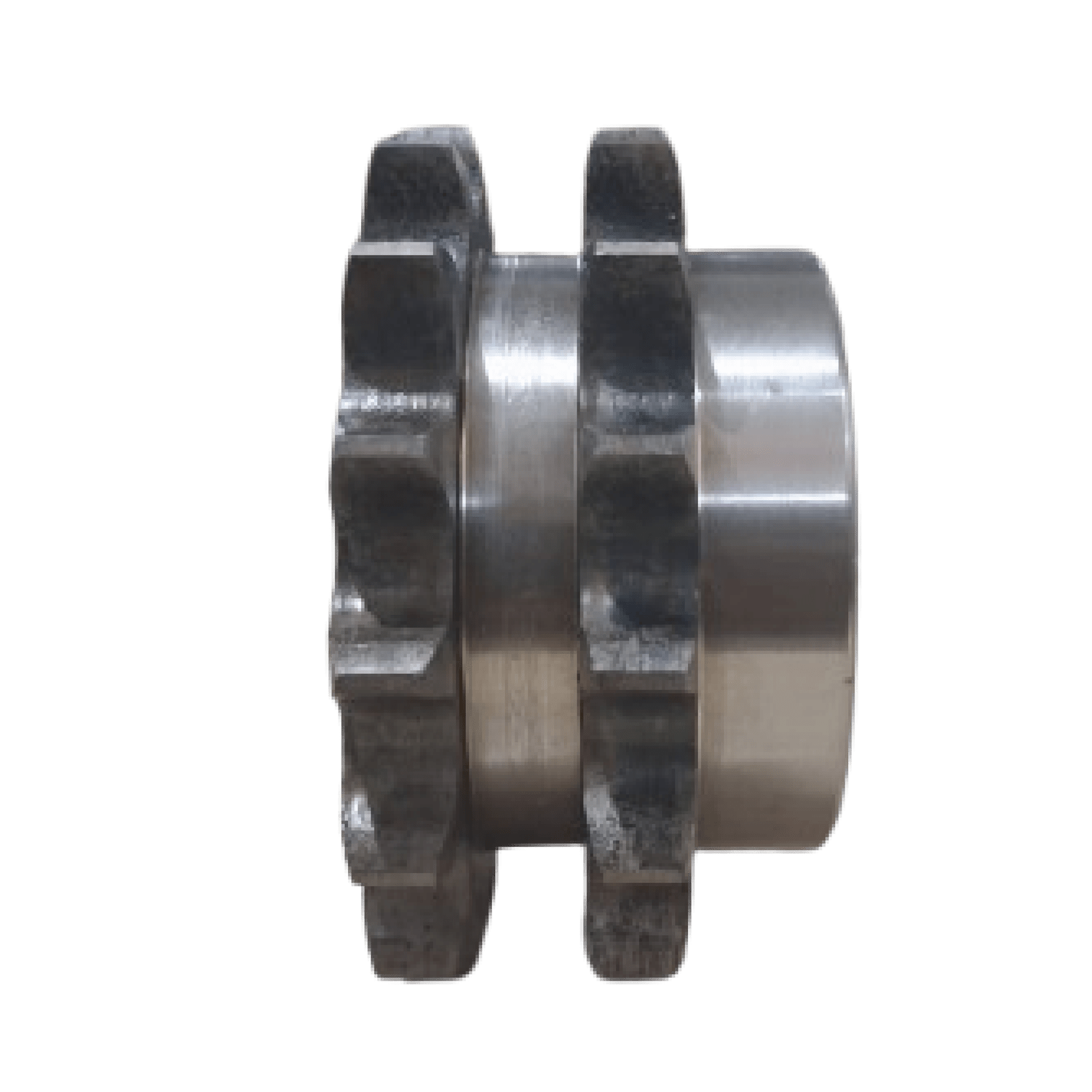 Engrenagem para Corrente Dupla é um componente cilíndrico dentado usado em sistemas de transmissão por corrente, em que seus dentes se encaixam nos elos da corrente para transmitir movimento rotativo de um eixo para outro.