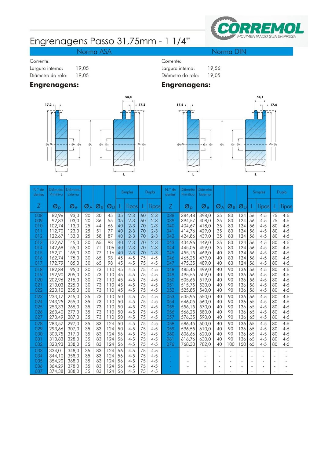 • Diâmetro e medidas técnicas: consultar imagens ou nosso catálogo de engrenagens;