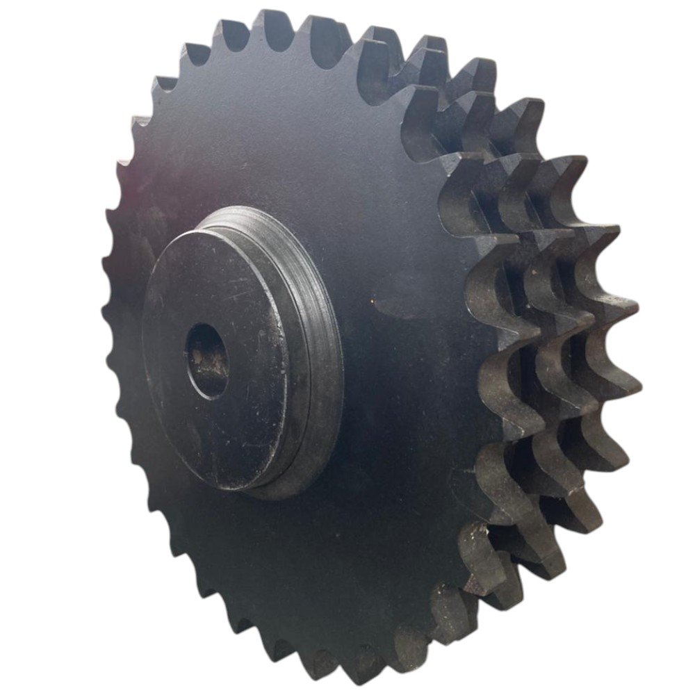 Engrenagem tripla de alto rendimento, desenvolvida para sistemas industriais que operam com corrente padrão ASA 100. Este modelo possui três pistas com 30 dentes cada, oferecendo maior capacidade de transmissão de torque, alinhamento preciso e durabilidade em operações contínuas. Construída com material de qualidade, é ideal para aplicações que exigem resistência e confiabilidade.