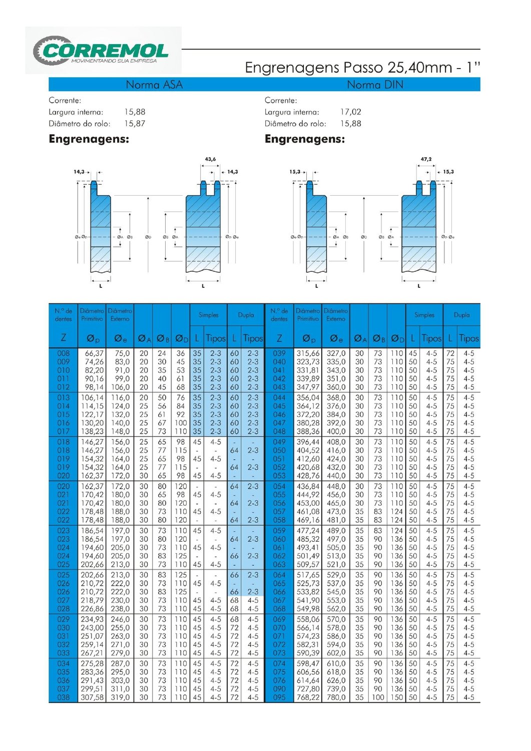 • Diâmetro e medidas técnicas: consultar imagens ou nosso catálogo de engrenagens;