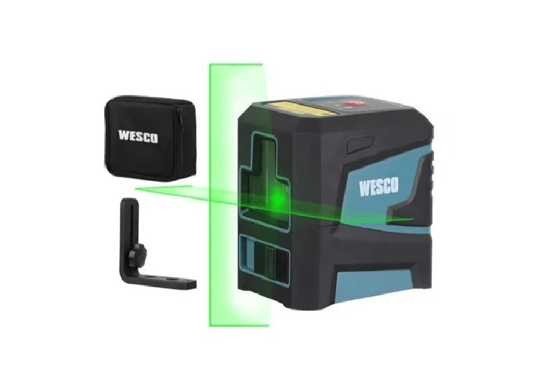 - Com uma precisão de mais ou menos 1/8 de polegada a 10 metros, o laser verde Wesco é ideal para alinhamento de azulejos, estudos de parede, janelas, portas, etc.