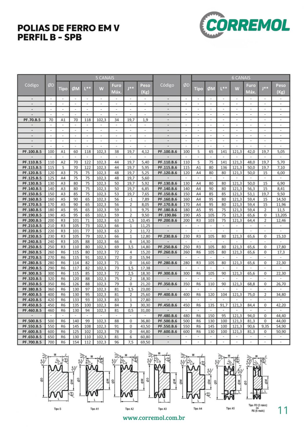 • Perfil da correia: B (5 canais);