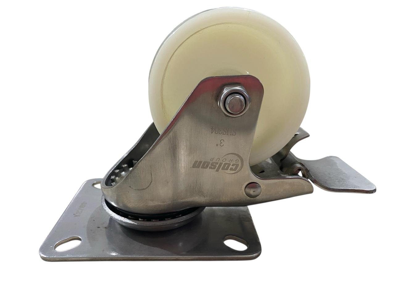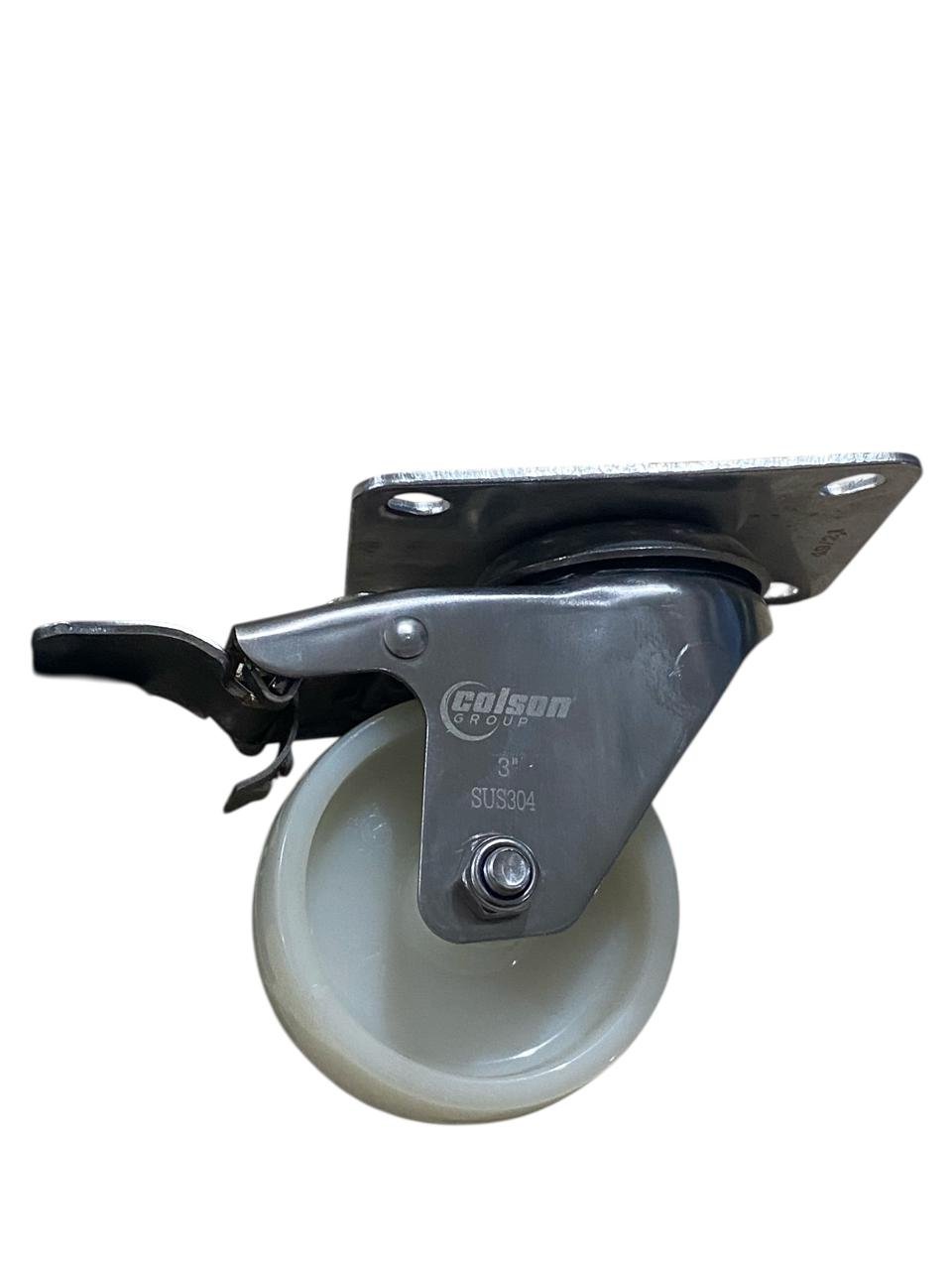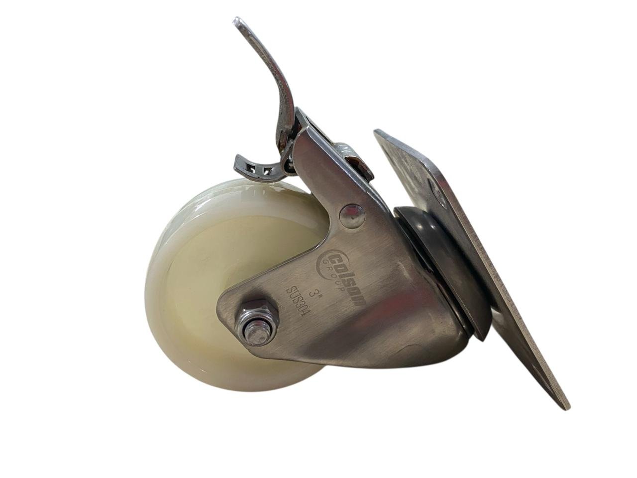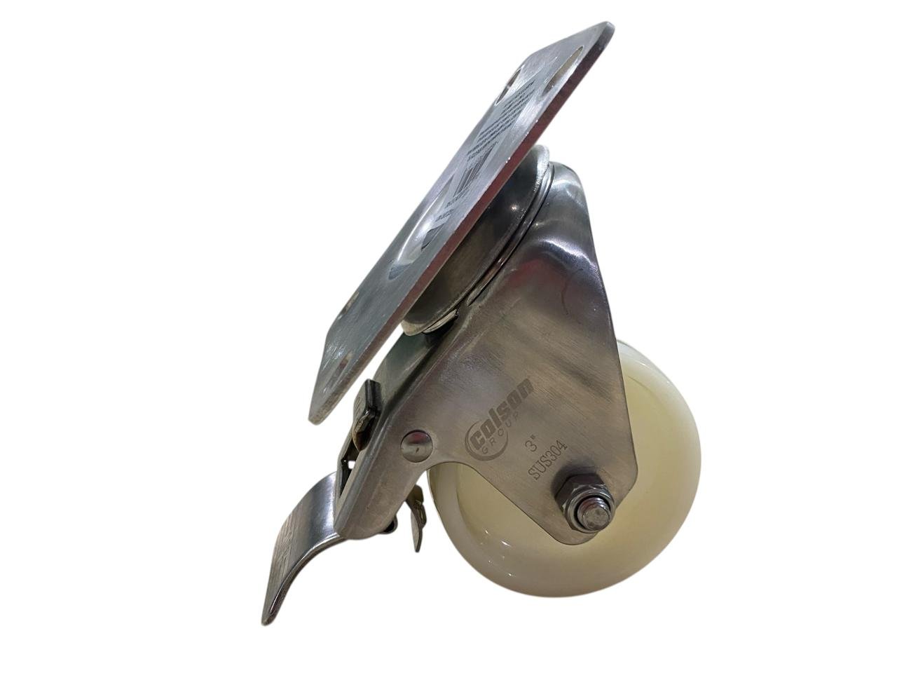 Rodízio Giratório Placa 312 Nylon Inox Com Freio COLSON